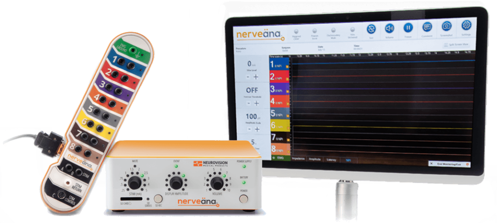 The Nerveäna system assists surgeons in identifying and preserving motor nerves during high-risk procedures. The objective was to refine the EMGView software interface to transform complex electromyographic (EMG) data into intuitive, actionable insights that support informed decision-making in the operating room.
